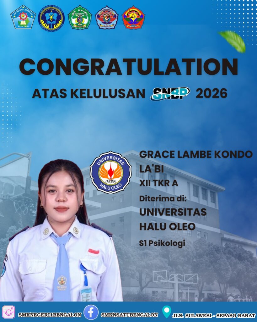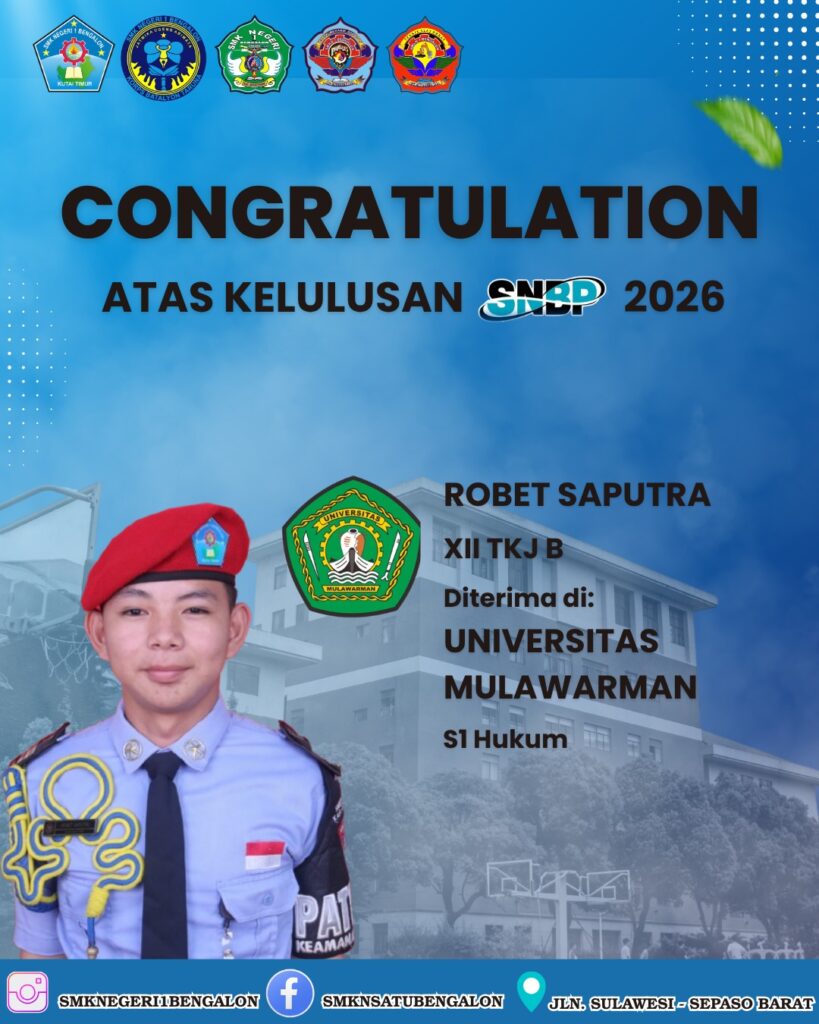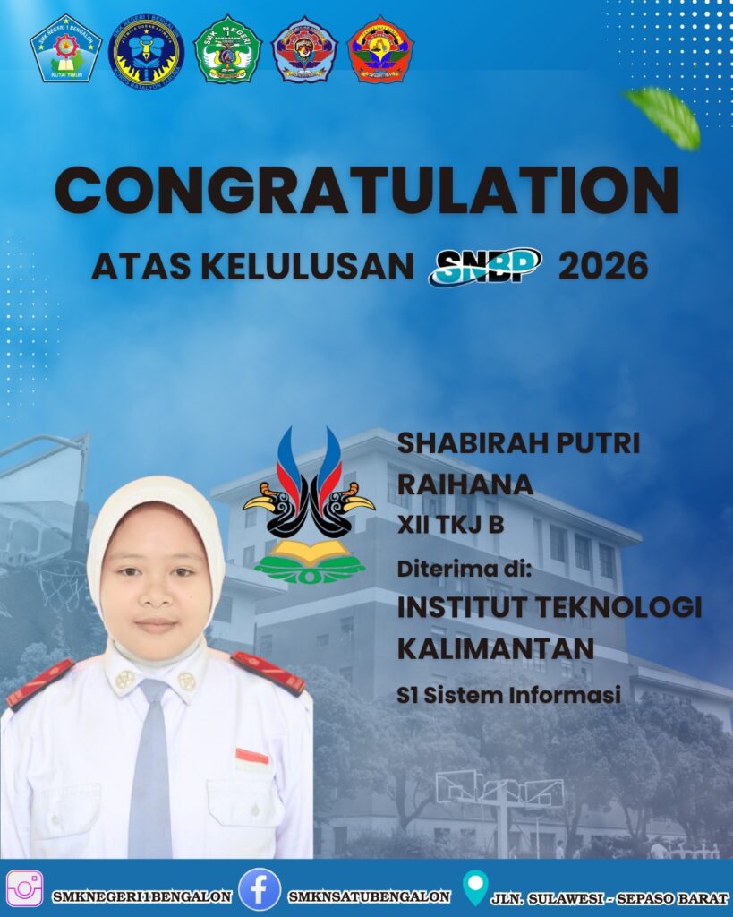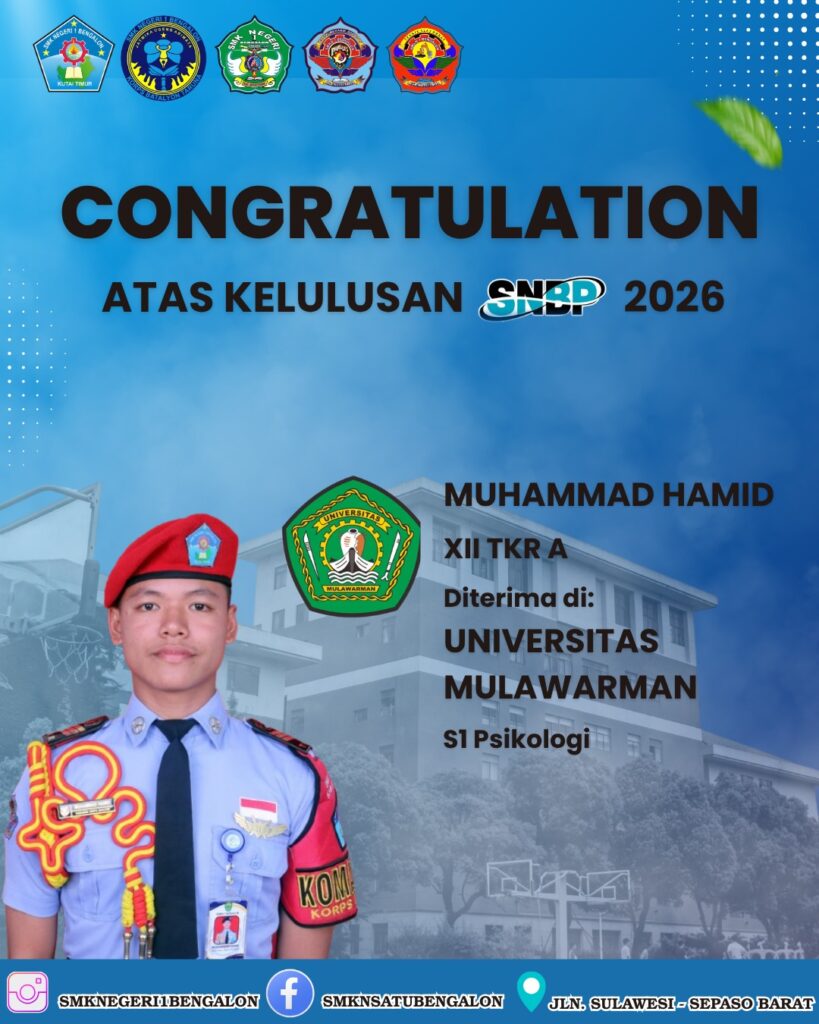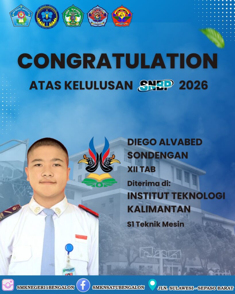 Bengalon, 6 April 2026 – Kabar gembira datang dari dunia pendidikan tinggi. Sebanyak enam Taruna/i terbaik SMK Negeri 1 Bengalon dinyatakan LULUS dalam seleksi masuk Perguruan Tinggi Negeri melalui jalur prestasi (SNBP) tahun 2026.